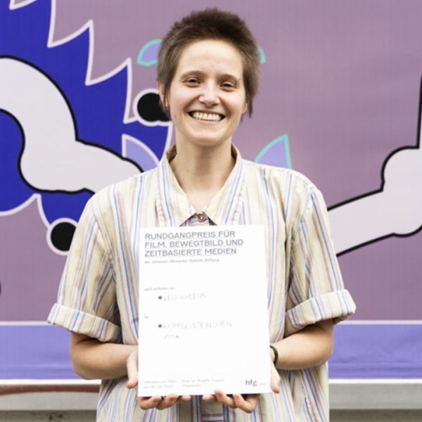 „Mit wenigen filmischen Mitteln katapultiert uns Leo Ahlers mitten hinein in die Auseinandersetzung mit der eigenen Herkunftsfamilie und kreiert von Beginn an eine atmosphärische Konstellation, die neugierig macht. Zu hören sind Gesprächsfragmente mit der eigenen Mutter und knappe Beschreibungen, zu sehen Dia-Fotografien, die in einem Schlafzimmer-ähnlichen Setting projiziert und mit Performance-Elementen verbunden werden. Die Auseinandersetzung mit Familie und Herkunft erscheint hier als etwas, das schwer zu greifen ist, aber doch unterbewusst nachwirkt. Und überhaupt: Blickt der Großvater eigentlich schlesisch oder preußisch? Und warum war der Ausdruck emotionaler Nähe unüblich in der Familie? Wir möchten Leo Ahlers ermutigen, diesen Fragen weiterhin künstlerisch auf den Grund zu gehen.“ (Jurybegründung)